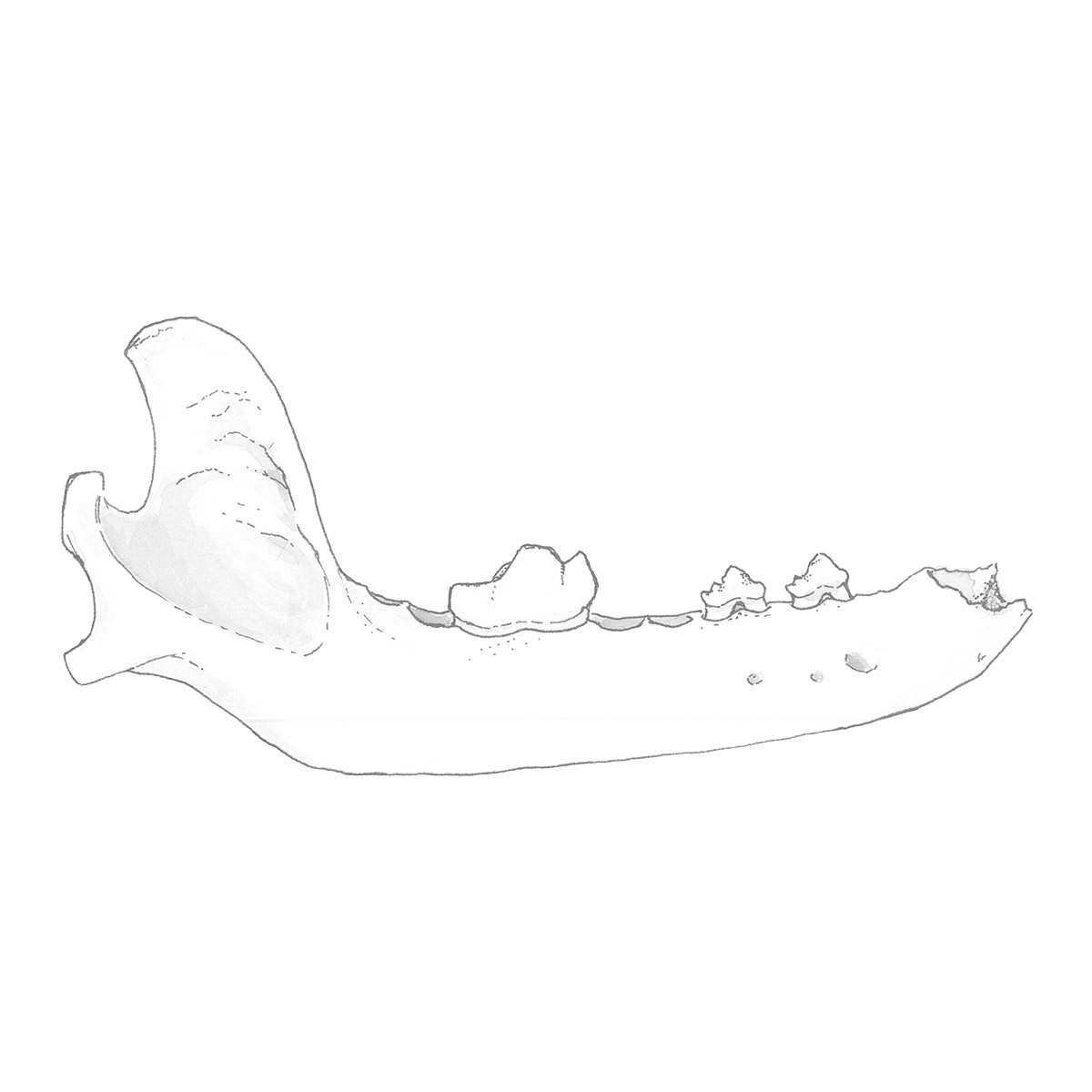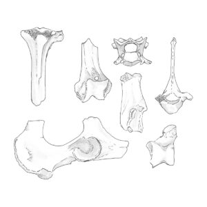 Because dogs are culturally significant to Virginia Indian tribes, illustrations of the remains rather than photographs are used for this website page. Illustrations by Eleanor Robb, Archaeological Field Technician.