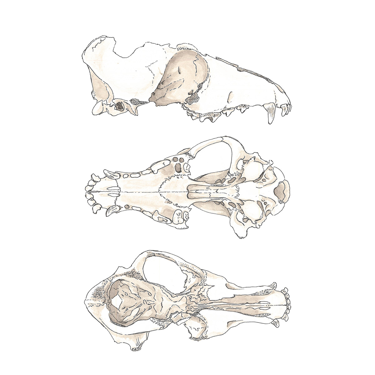 Dog skull from three perspectives