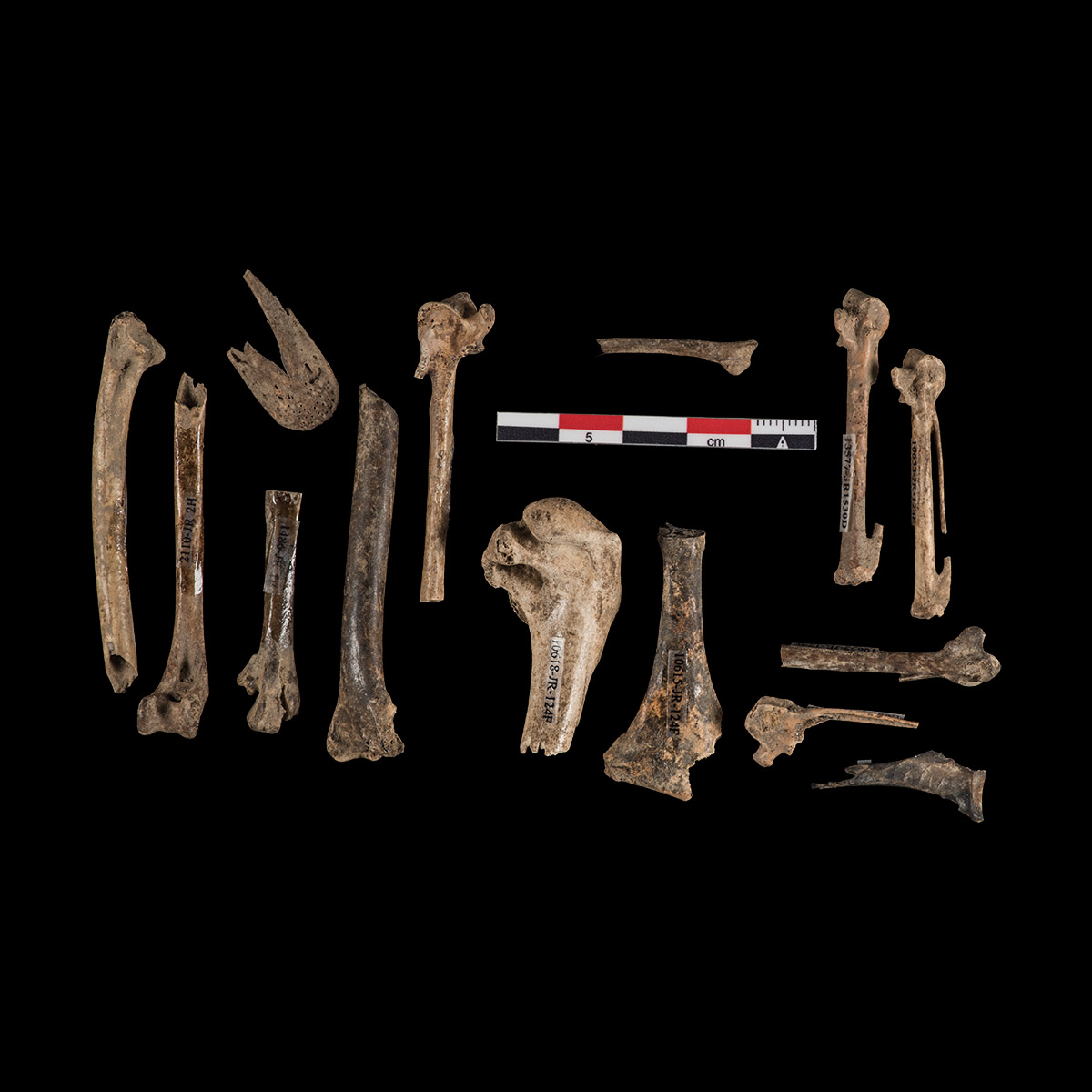 Thus far, archaeologists at Jamestown Rediscovery have identified several duck species from features including Pit 1, Pit 3, the First Well, and the Second Well. These include mallards (Anas platyrhynchos), diving ducks (Aythya spp.), dabbling ducks (Anas spp.), ring-necked ducks (Aythya collaris), black ducks (Anas rubripes), wood ducks (Aix sponsa), and ruddy ducks (Oxyura jamaicensis). Several of these duck bones have evidence of burning and butchery, which is consistent with their use as a dietary staple.