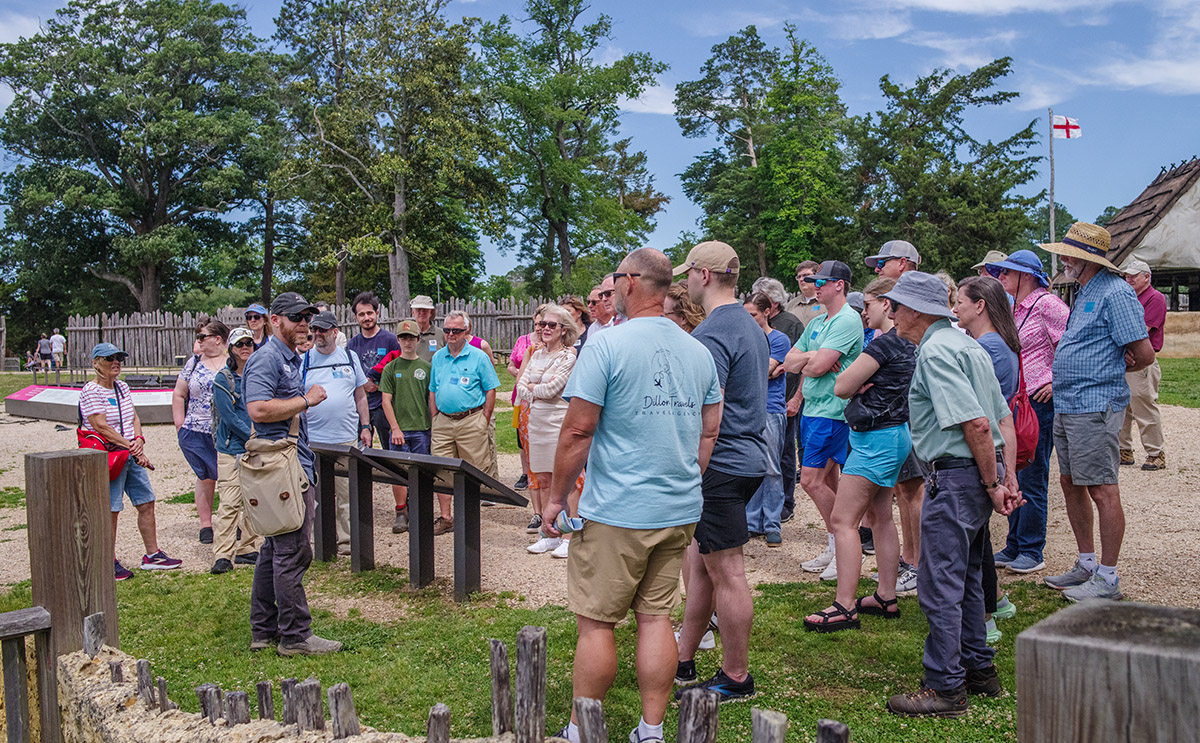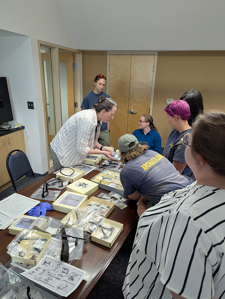- Sara Rivers Cofield shares equestrian artifacts with members of Jamestown’s archaeological and collections staffs.