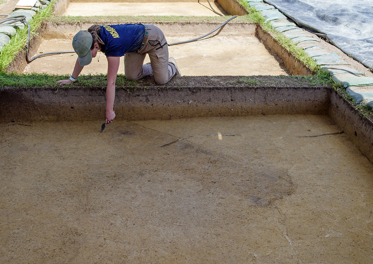 - Staff Archaeologist Ren Willis scores a burial found south of the Archaearium this month.