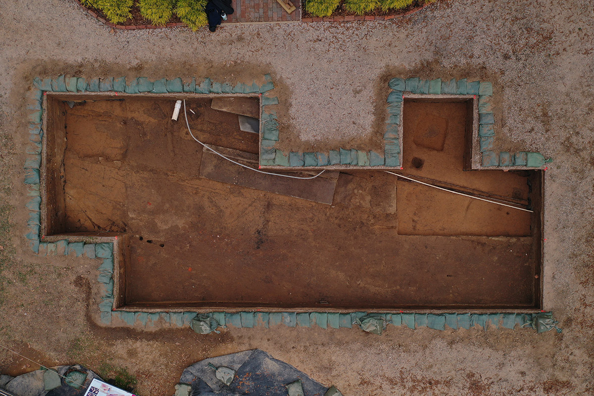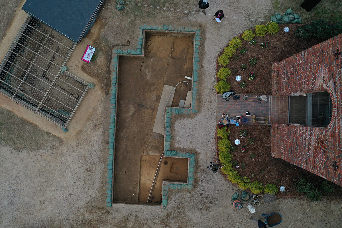 - A drone shot of the excavations just outside the Church Tower