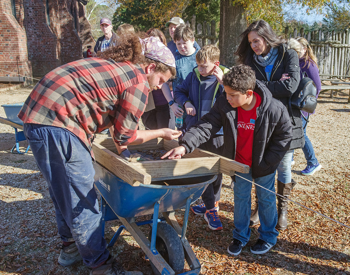 - Archaeological Field Technician Josh Barber shares some of the artifacts found while screening soil from the excavations just outside the Church Tower.