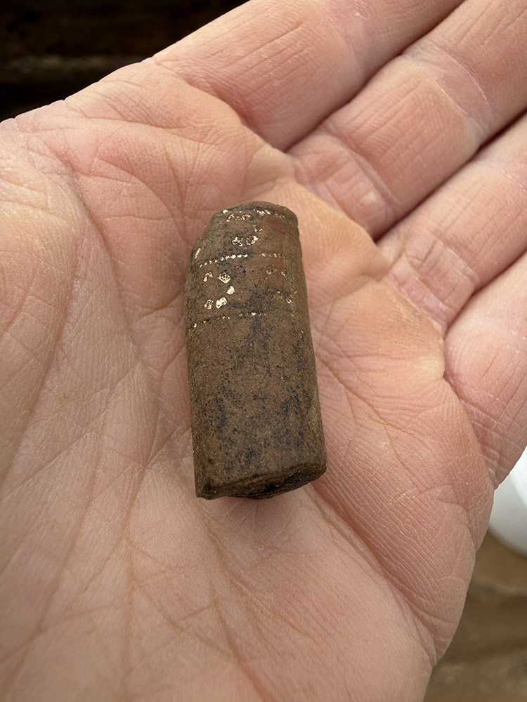 - A decorated pipe stem made of Virginia clay found in the excavations outside the Church Tower