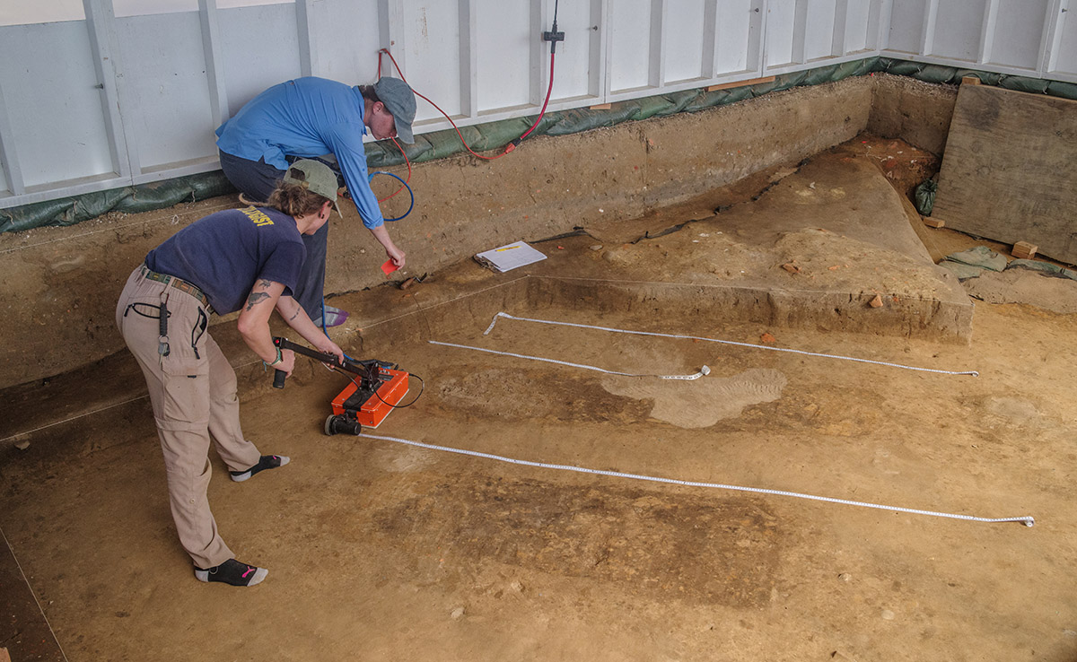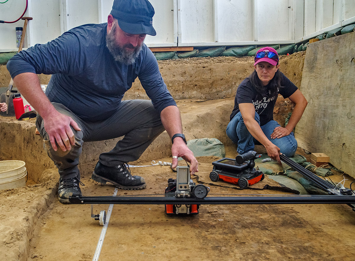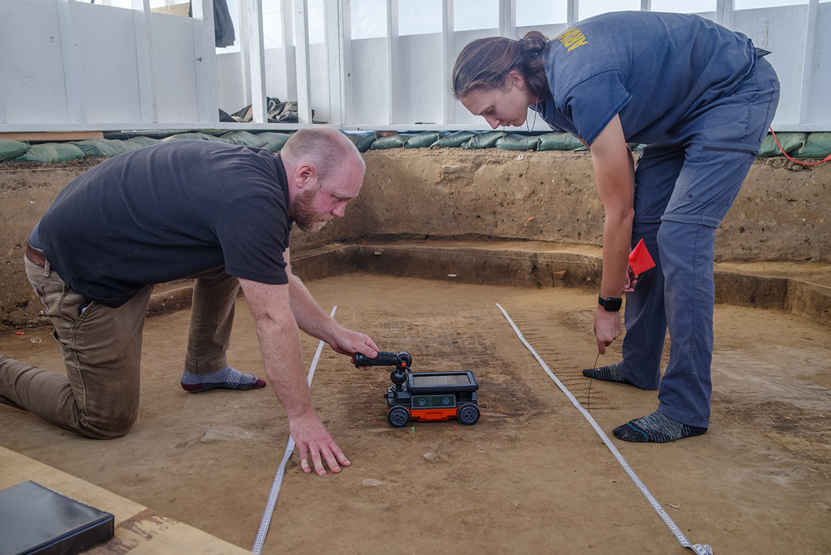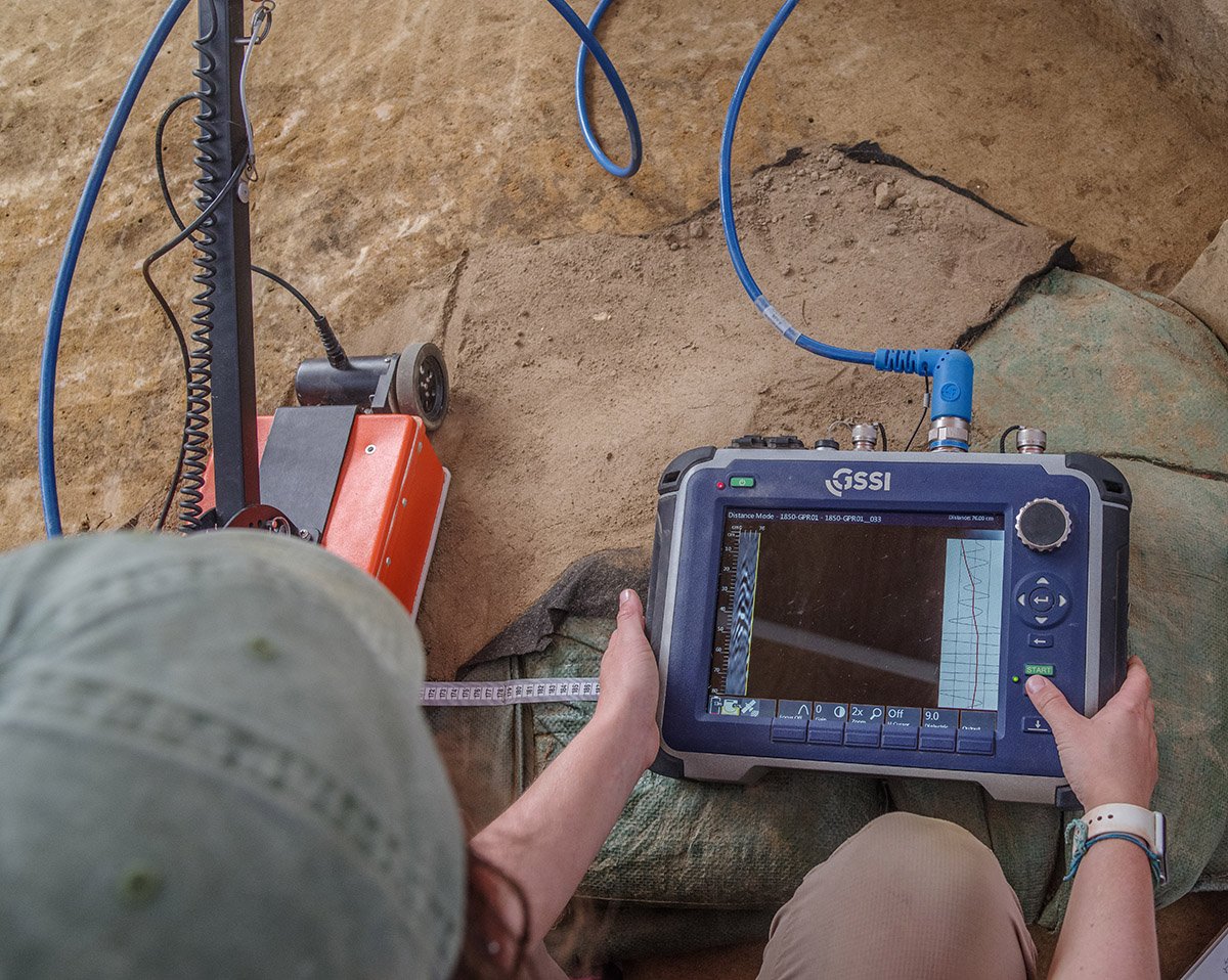 - Director of Archaeology Sean Romo and Senior Staff Archaeologist Anna Shackelford conduct a ground-penetrating radar survey of JR1486.