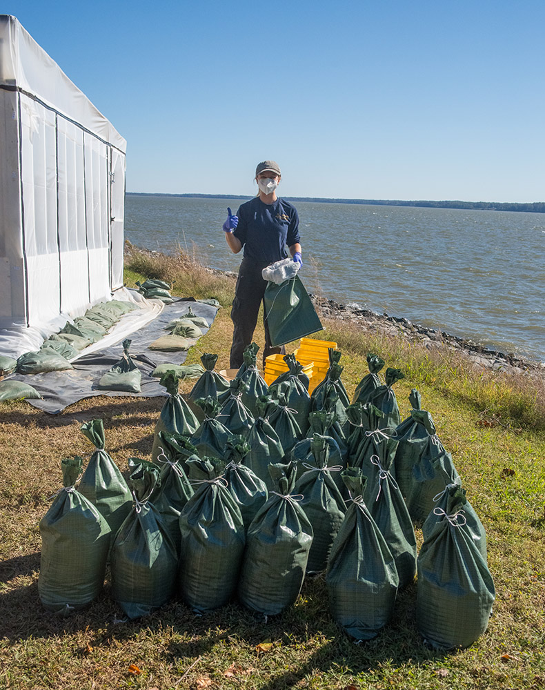 In a case of bad timing, Hurricane Melissa was in the Atlantic during the excavations and though the eye was just west of Bermuda, approximately 600 miles away from Jamestown, it caused a tidal swell that inundated Smithfield via the Pitch and Tar Swamp. The excavation site was well protected with layers of sandbags and an earthen berm built by Senior Staff Archaeologist Anna Shackelford using a backhoe. However the site was flooded not from the surface, but by water percolating sideways out of the earthen walls defining the excavation area. Luckily the archaeologists were able to get much of the data they needed prior to the flooding, but the remains are still underwater. Once the site dries out the archaeologists will investigate the feasibility of extracting some or all of the remains for further analysis.