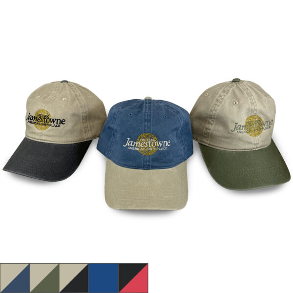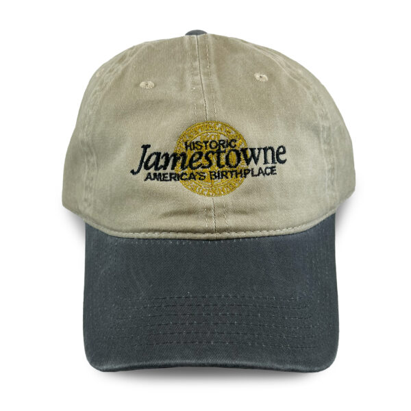 Commemorate the founding of the first permanent English Colony in America with this embroidered baseball cap. Featuring the coin logo of Historic Jamestowne, which reads “Historic Jamestowne, America’s Birthplace” over the image of a 1607 sixpence.
