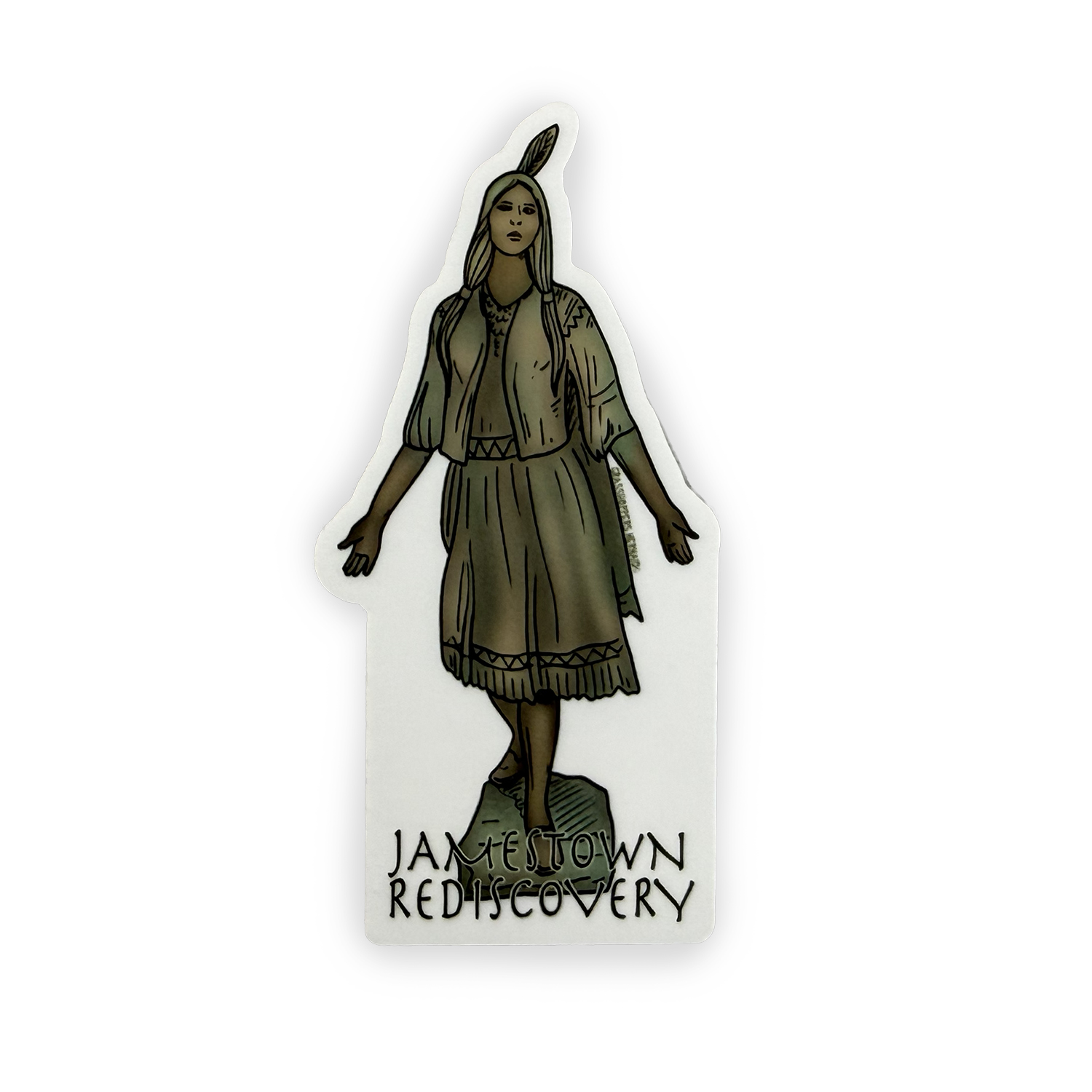 This hand-drawn sticker representing the bronze Pocahontas statue on Jamestown Island is an excellent memento of your visit to Jamestown.