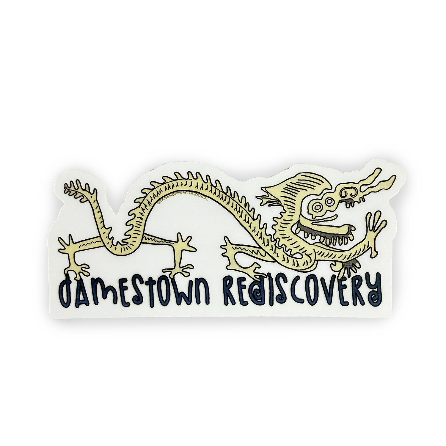 This hand-drawn sticker is designed after our Dragon bowl fragment, also featured in Following the Dragon: Late Ming Porcelain From James Fort, Jamestown, Virginia shows a dragon chasing a flaming pearl, and it is one of only two such bowls known in the world! In Chinese mythology, dragons were divine creatures that symbolized strength and good fortune; the flaming pearl represented wisdom.